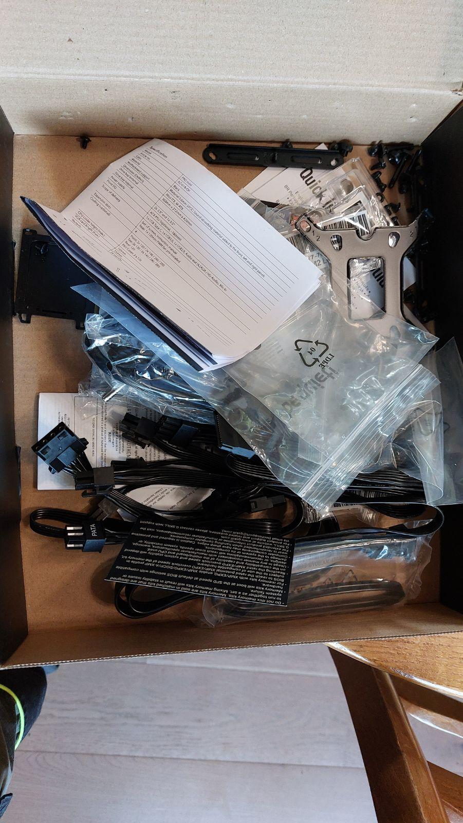 Lors de la livraison, un carton avec des pièces comme des vis ou des éléments du boîtier ont été gardés. Toutes les notices étaient présentes également, pratique si on souhaite upgrade le pc nous même après et qu'on s'y connaît pas trop. D'ailleurs livraison très rapide.