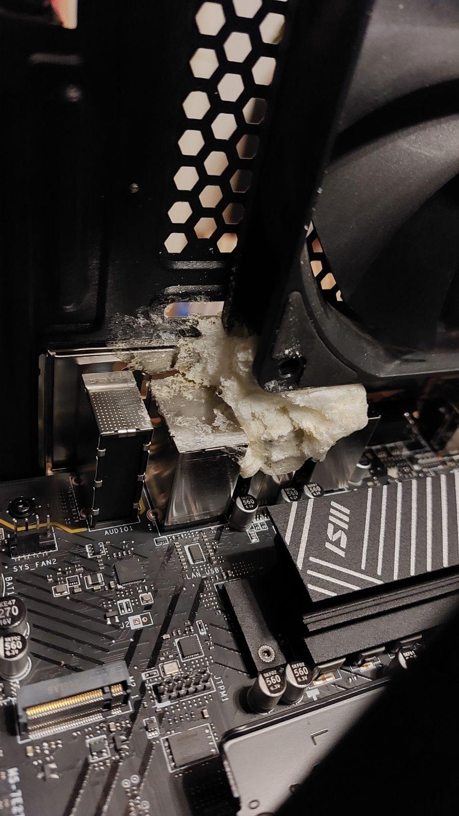 -La protection placée par LDLC (une mousse expansive dans un sachet) ne protège pas grand chose pendant le transport : elle n'était pas assez étendue pour fixer le ventirad ou la carte graphique.