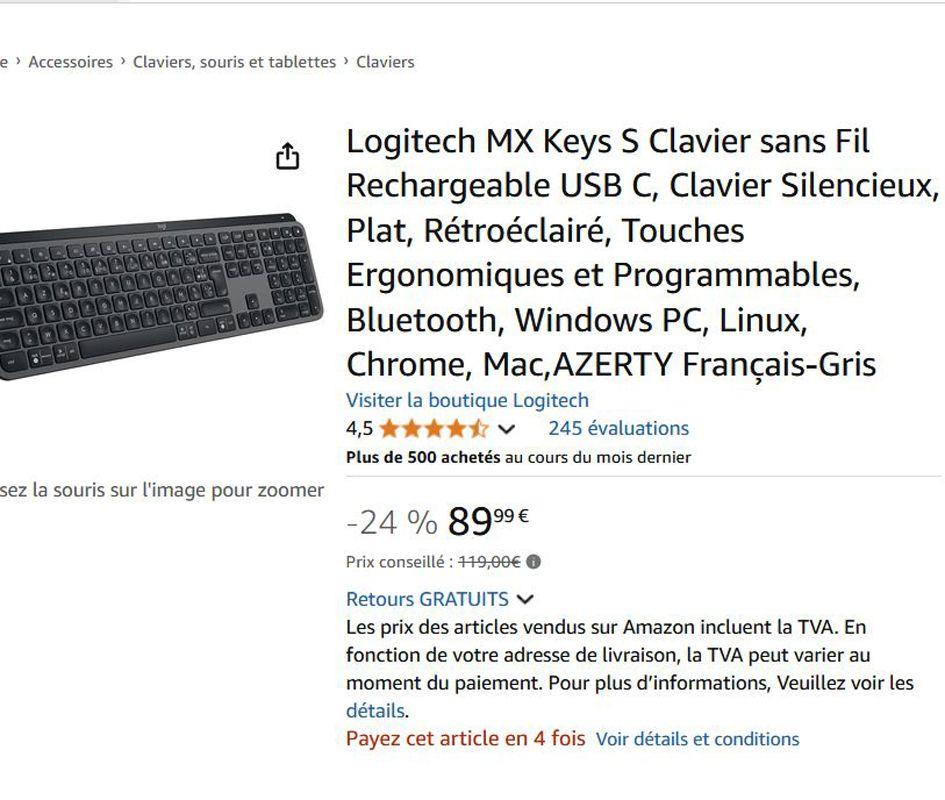 Bref, c'est un très bon produit dans l'ensemble, mais à cause de ces quelques détails (au regard du prix), je ne mets pas 5/5.Modèle : Logitech MX Keys S (Graphite) -