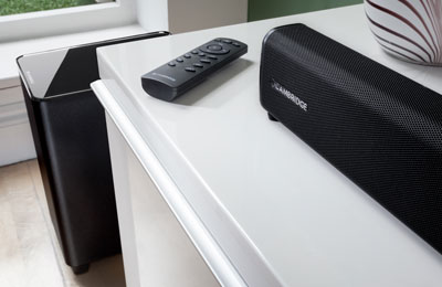 Uncompromising soundWith TVB2 (V2), Cambridge enhances your sound experience so you can hear dialogue clearly in the movies and programmes you watch, while ensuring that your music plays back smoothly and accurately. The responsive wireless subwoofer with 165mm driver is connected by barcode, eliminating the need for a connection procedure. Simply plug in the subwoofer and it starts working with the bar. |