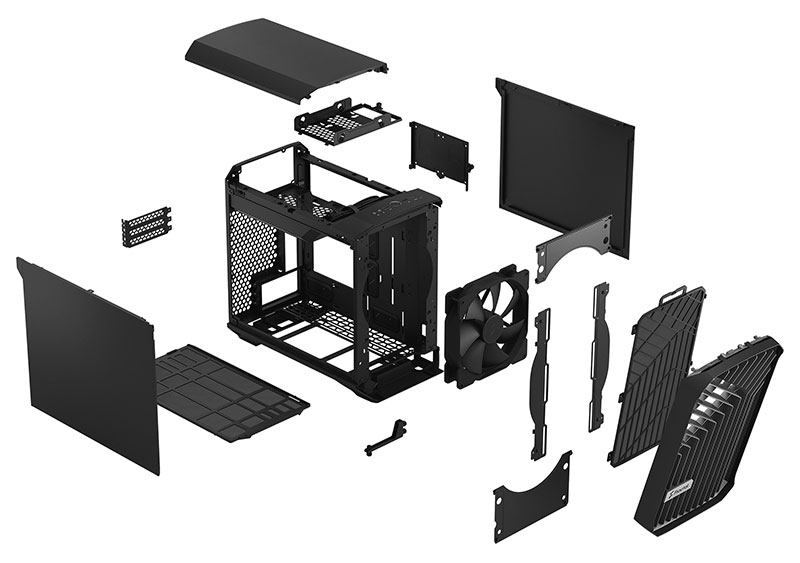The Fractal Design Torrent Nano Black Solid is a compact PC case ideal for assembling a space-saving gaming setup. It supports up to 4 or 5 fans (depending on the configuration) as well as AIO watercooling up to 280mm. It has a perforated front panel and expansion ports on the top. Its striking design and advanced cooling capabilities make it a particularly good choice for a compact, stylish and efficient gaming PC.