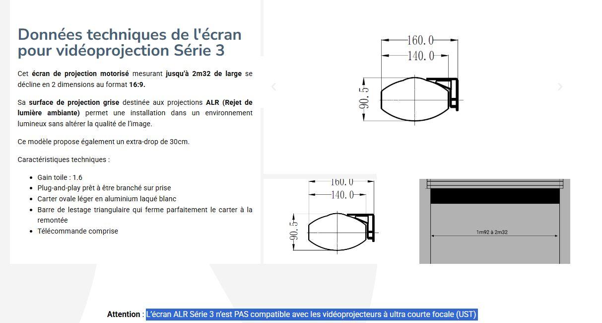 - Grey projection surface for UST (Ultra Short Focal Length) and ALR (Ambient Light Rejection) projection.