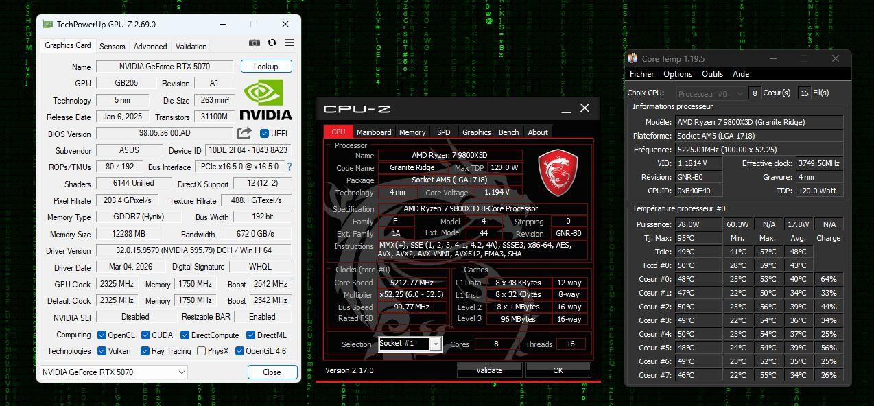 After a few weeks with the Ryzen 9 9800X3D, I’m absolutely won over. This processor is simply mind-blowing: exemplary smoothness across all my games, zero stuttering, and 4K@165Hz performance that fully takes advantage of my LG OLED G5 with my RTX 5070 thanks to DLSS 4. The image is incredibly sharp and fluid; games run like butter whether on demanding titles or intense multiplayer sessions.
