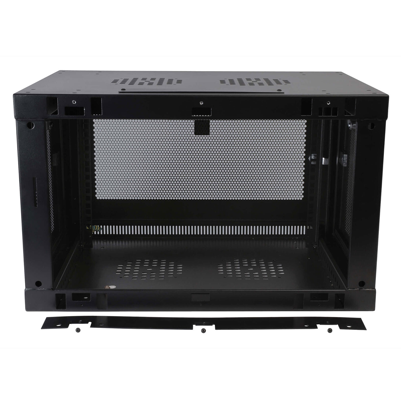 ] StarTech.com 6U 2-post wall-mounted server cabinet with 1U shelf [LDLCCONTEXT:This 6U network cabinet was designed by StarTech.com. It allows you to wall-mount your EIA-310-compliant equipment. The enclosure has a mounting depth of up to 38.1 cm and a maximum load capacity of 90 kg.