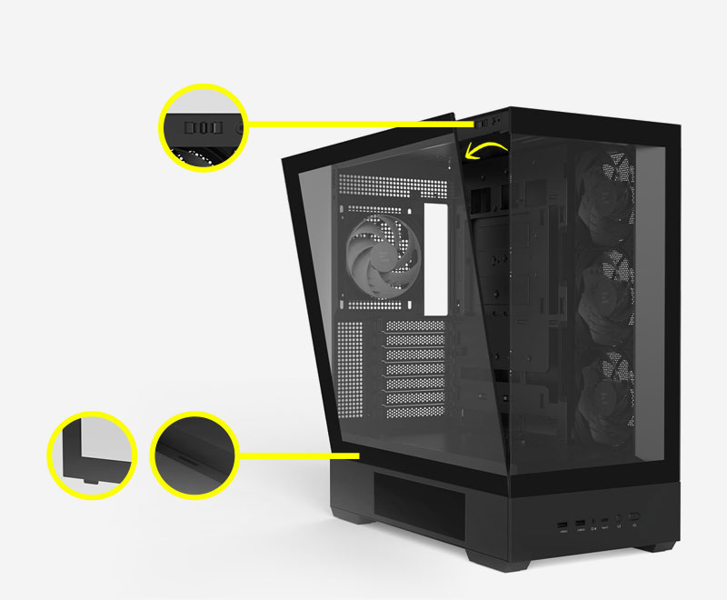 The Zalman P40 DS features a premium design for high-performance PC enthusiasts. Featuring two frameless 4mm tempered glass panels on the front and side, it offers a spectacular panoramic view of the interior of the configuration. Its design provides optimised space for extremely efficient cooling, with compatibility for up to ten fans and 360 mm radiators at the top and side. It also supports motherboards with inverted connectors for cleaner cable management and minimalist aesthetics. Easy access to components is ensured thanks to a tool-free system for the side panel, as well as a maintenance-friendly internal design.