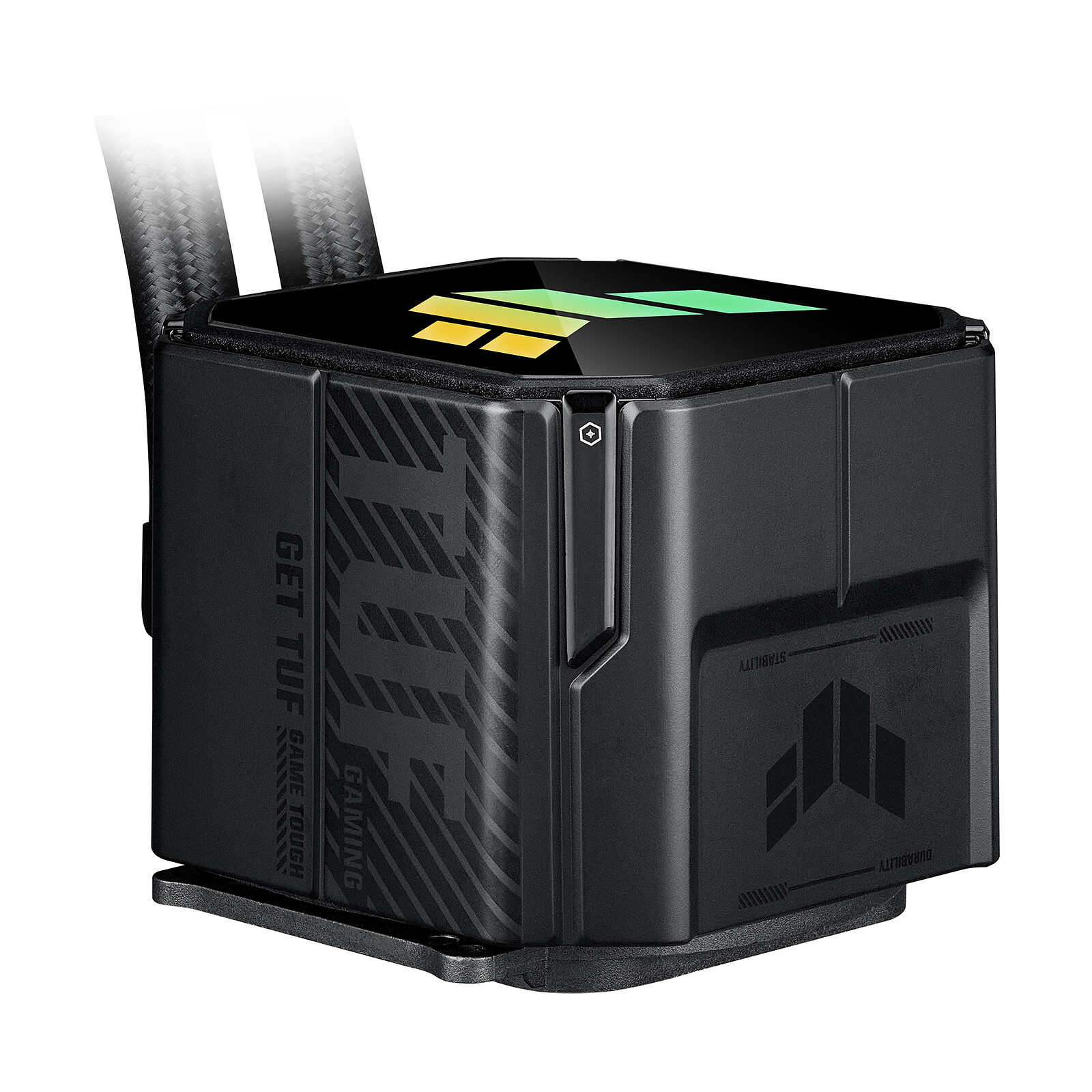 The ARGB fans rotate between 650 and 2600 rpm, intelligently adapting to cooling needs thanks to PWM (pulse width modulation). Even at full power, the noise level remains contained at 37.4 dB, for an experience that's as powerful as it is discreet. The LC III's sober, solid black design is enhanced by multicoloured ARGB lighting on the fans and waterblock. Synchronisable with other Aura Sync compatible components, it adds an immersive visual touch to your setup, without compromising on the legendary robustness of the TUF range.