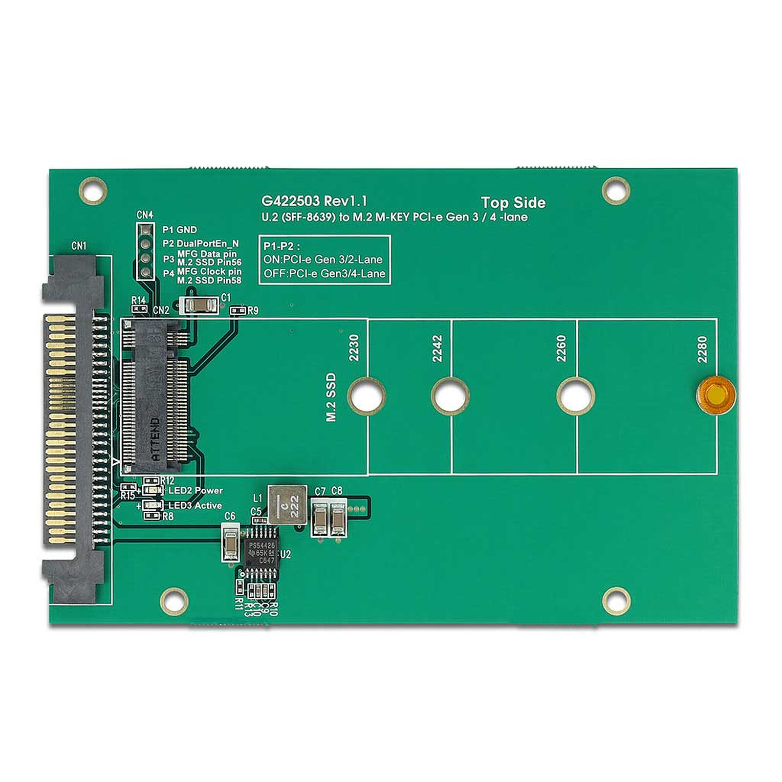 - Connectors: 1 x U.2 SFF-8639 male and 1 x M.2 67-pin M-key slot