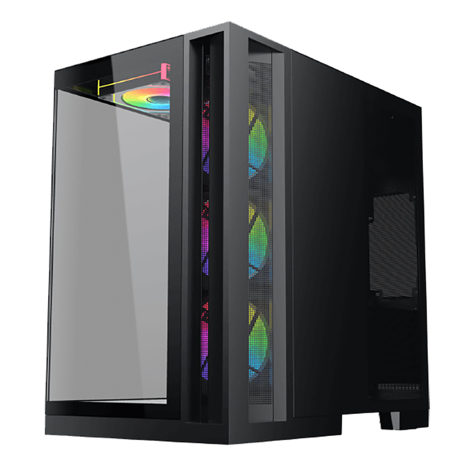 The Xigmatek Aqua 7 combines capacity and ease of assembly, efficient cooling and an elegant look. It will showcase your components thanks to its two tempered glass panels. With a mid-tower format, equipped with eight 120 mm ARGB fans, and capable of accommodating a 360 mm long graphics card, it will provide you with the optimal environment for designing a high-performance configuration dedicated to gaming.