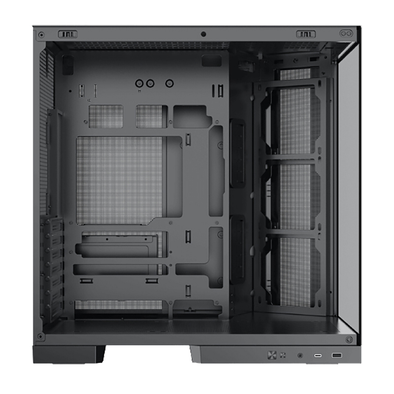 Mid-tower case with tempered glass front and side panels