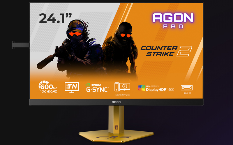 The AOC AGON PRO CS24A gaming monitor is designed for eSports with its Ultra-Fast TN panel and maximum frequency of 600 Hz (overclocked to 610 Hz). With a fast response time of 0.5 ms and support for Adaptive-Sync/G-SYNC Compatible technology, this 24.1-inch AOC monitor offers excellent responsiveness. VESA DisplayHDR 400 certified, this monitor will also be able to offer a beautiful colour gamut.
