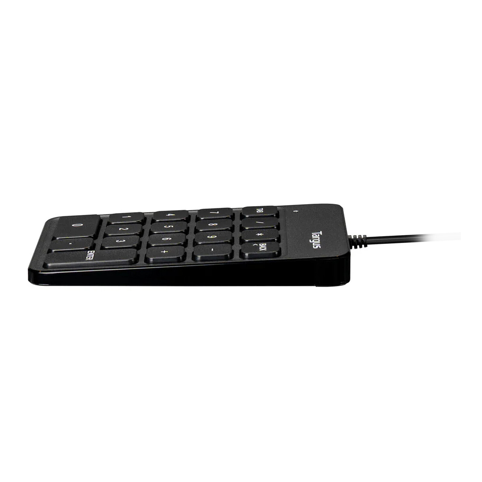 The Targus USB Wired Keypad numeric keypad is an input accessory designed to make entering numeric data easier on a laptop or desktop computer. Intended for both professional and home users, it offers a simple wired solution that is easy to set up. Its compact format and design incorporating recycled materials make it a peripheral suited to modern work environments.