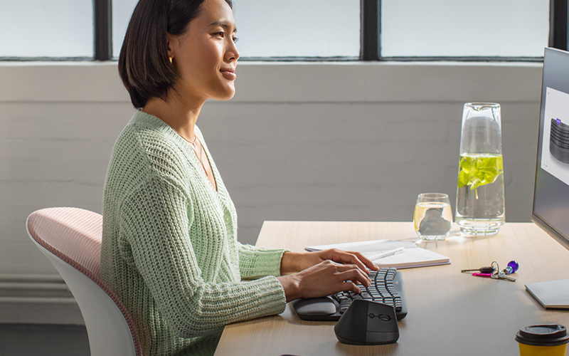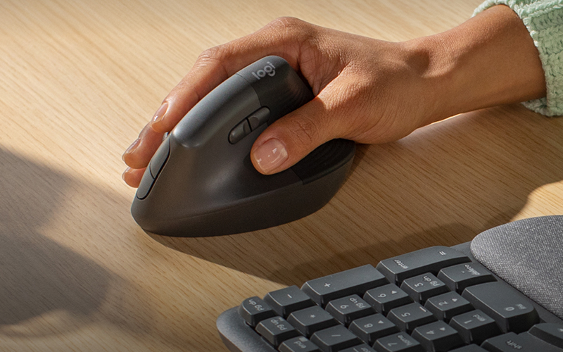The Lift mouse features a 57° vertical design, specially designed to relieve wrists and promote a natural forearm posture. Its slightly textured grip and comfortable thumb rest ensure extended use without fatigue.