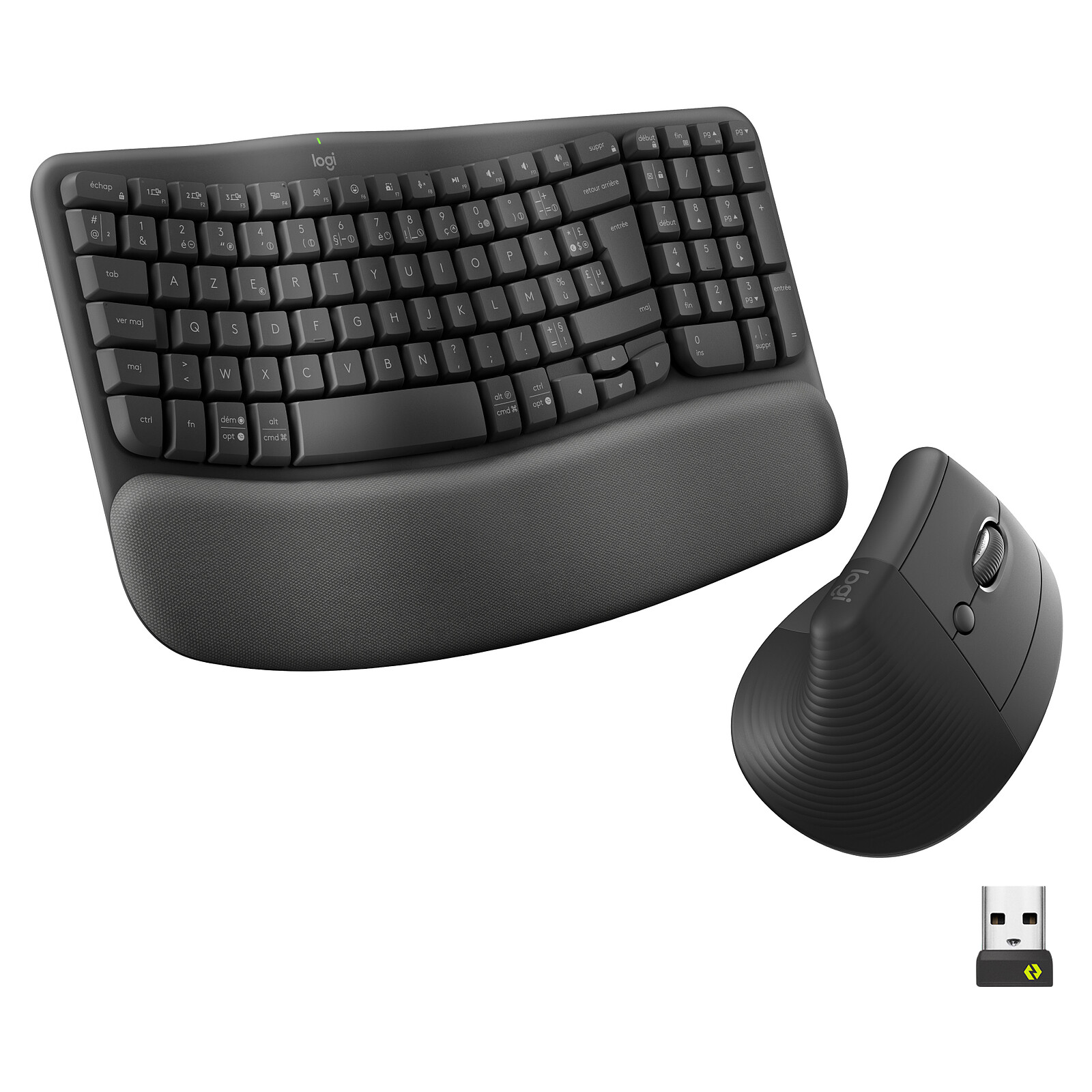 - Ergonomic design: curved keyboard and 57° vertical mouse for a natural posture