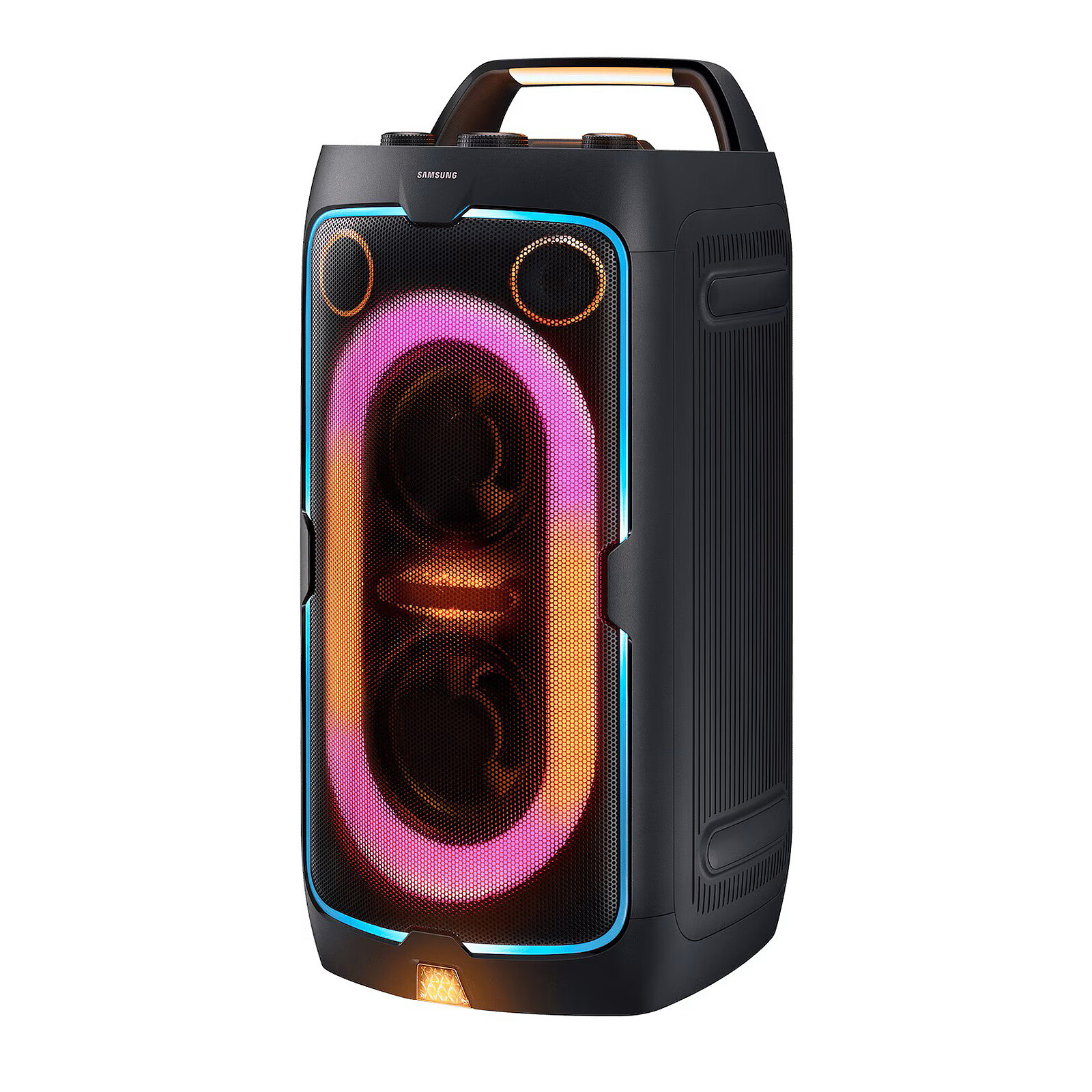 Dive into the heart of the atmosphere with the Samsung MX-ST40F/XE, a Bluetooth speaker designed to get all your evenings rocking. With its impressive 160 W power, it delivers a rich, balanced and enveloping sound, capable of filling a living room as well as an outdoor space. Its two woofers combined with high-performance tweeters ensure deep bass and precise highs, while its customizable bass modes let you tailor the sound to each music style. Add to that dynamic light effects synchronized with the music and you get a true sensory experience, ideal for creating a festive atmosphere in an instant.