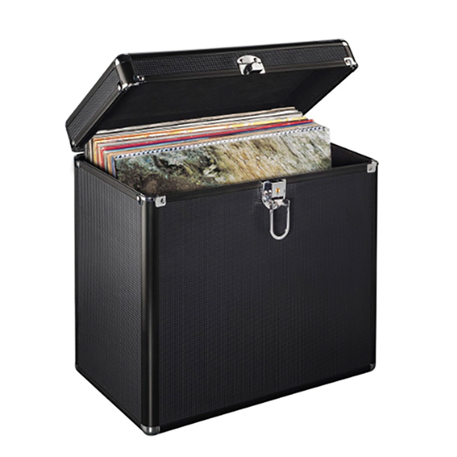 Hama te ofrece un elegante estuche de aluminio/negro de alta calidad para guardar 50 discos de vinilo en sus fundas originales. El maletín tiene un asa resistente para un transporte seguro y cómodo. El maletín puede cerrarse con llave para mantener a salvo su contenido. En caso de caída, no hay riesgo de que los discos se desparramen por el suelo. Por último, esta maleta tiene patas para mayor estabilidad cuando se coloca en el suelo.