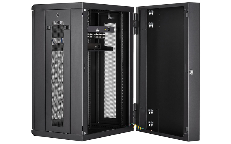 Este armario para servidores de 18U, repleto de funciones, es ideal para optimizar el almacenamiento de equipos en centros de borde de armario de red y tiendas tecnológicas con espacio limitado, donde se necesitan equipos montables. Dispone de raíles de montaje ajustables, puertas y paneles de malla y opciones de refrigeración activa.