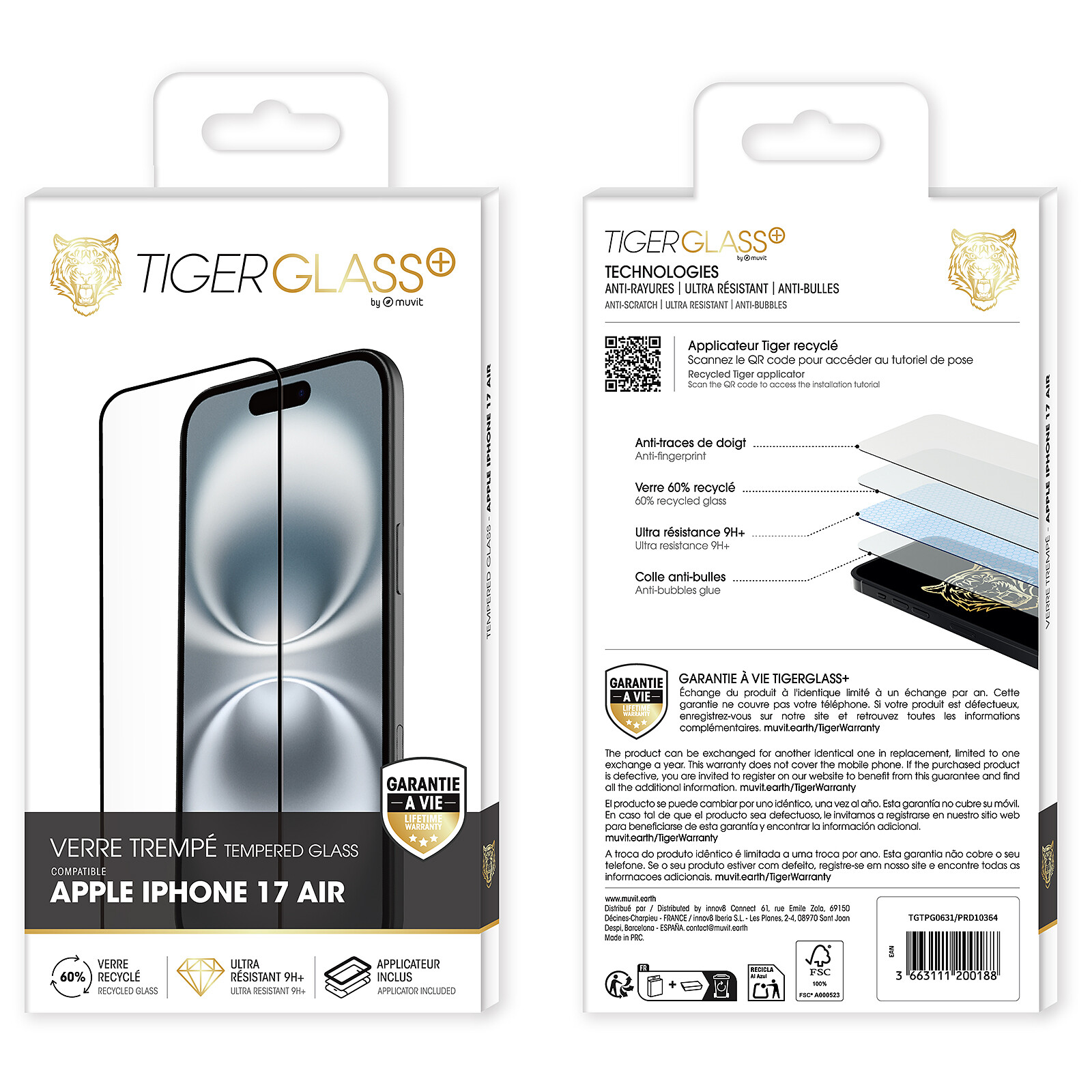 Lámina protectora Tiger Glass Tempered Glass Verre Trempé Recyclé iPhone Air |
