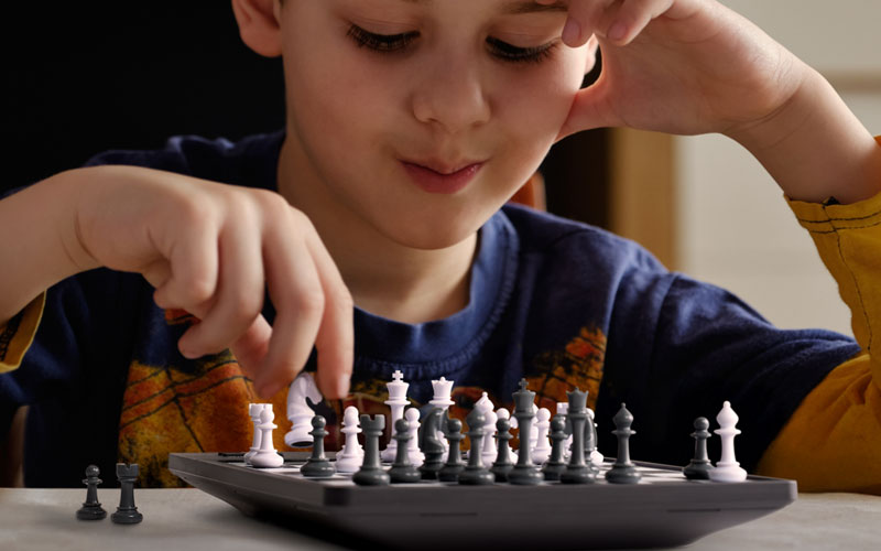 Gracias a su pantalla en color y a sus funciones de sonido, la experiencia de juego mejora: el sistema te avisa cuando cometes errores, te sugiere jugadas y te ayuda a recuperar la confianza en cada partida. También puedes disfrutar de minijuegos, funciones de análisis y un modo automático que ajusta el nivel en tiempo real según tu rendimiento: ¡un auténtico entrenador personal de ajedrez!