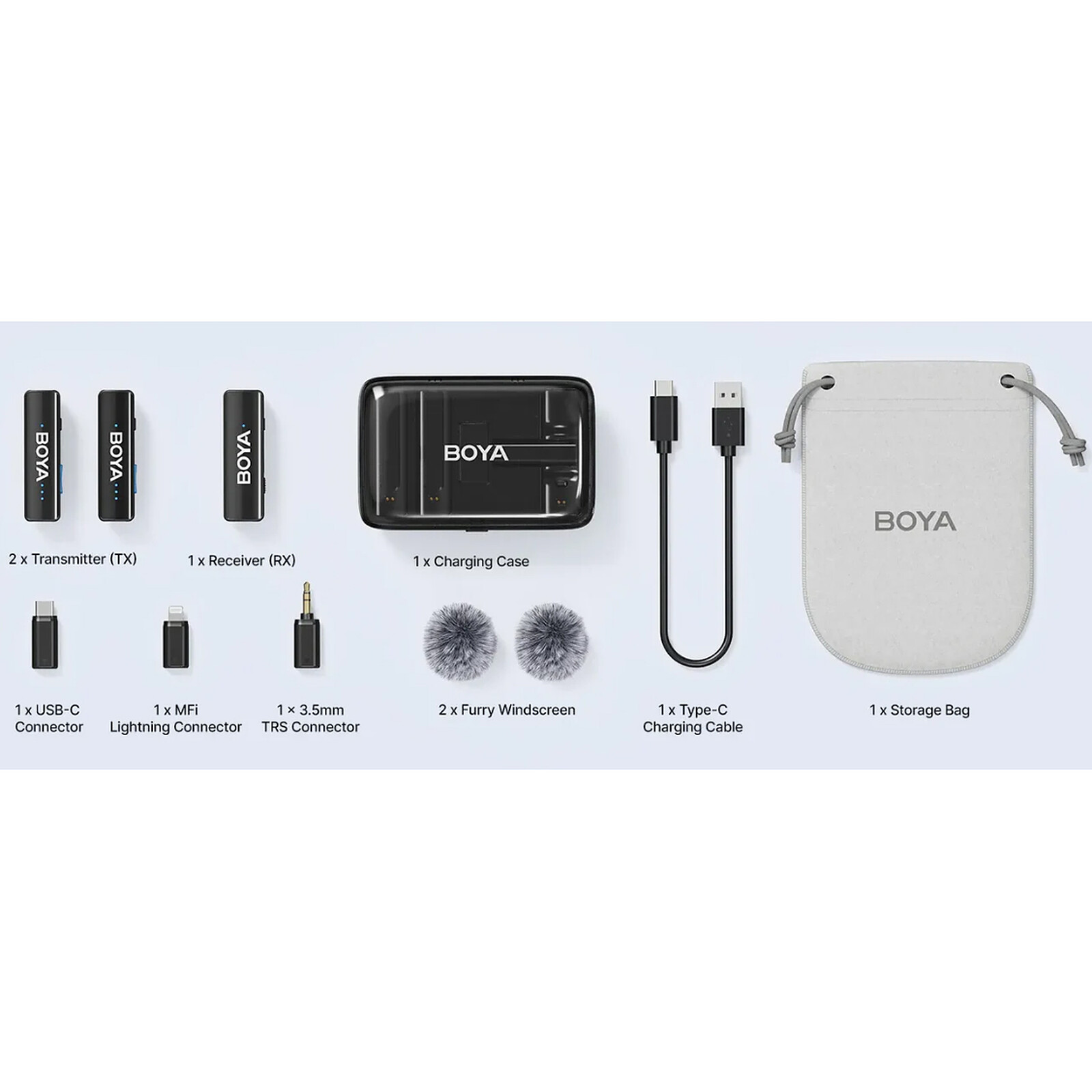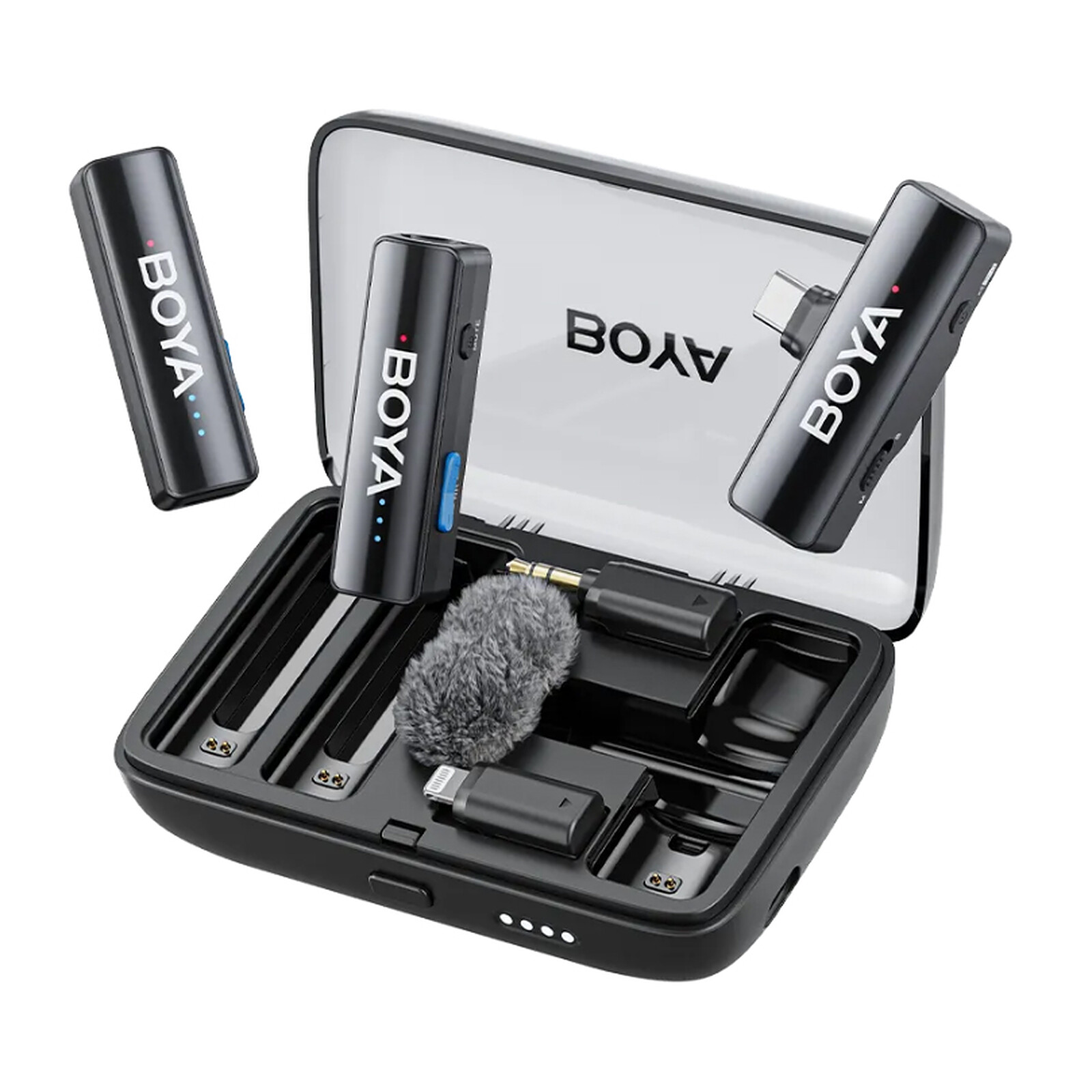 Boyalink V2.0 es una solución 3 en 1 mejorada (en comparación con la V1.0) para necesidades versátiles de grabación de audio de alta calidad. El receptor incorpora tres adaptadores intercambiables: TRS de 3,5 mm, USB-C y Lightning, que garantizan la compatibilidad universal con cámaras, dispositivos móviles y ordenadores. Boyalink V2.0 también dispone de emparejamiento automático, cancelación de ruido con un solo clic y admite la carga mientras se graba, lo que lo hace ideal para retransmisiones en directo, vlogging, periodismo móvil y mucho más.