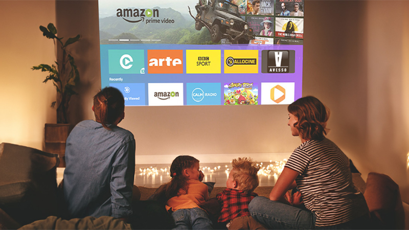 Gracias a este proyector inteligente, disfruta de tus plataformas de streaming favoritas y ve cómodamente tus series y películas favoritas en una pantalla grande.