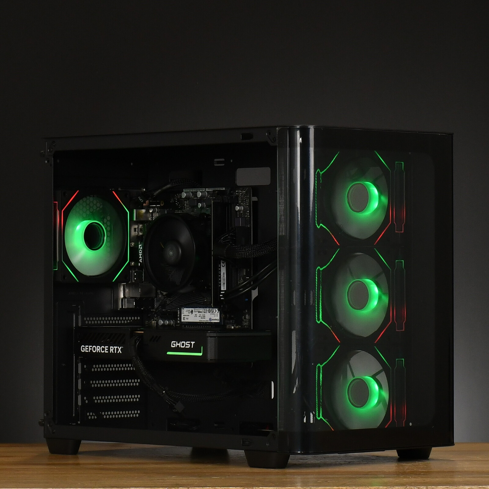 - Caja Aerocool P500C, con 4 ventiladores de 120 mm integrados (3 laterales, 1 trasero)