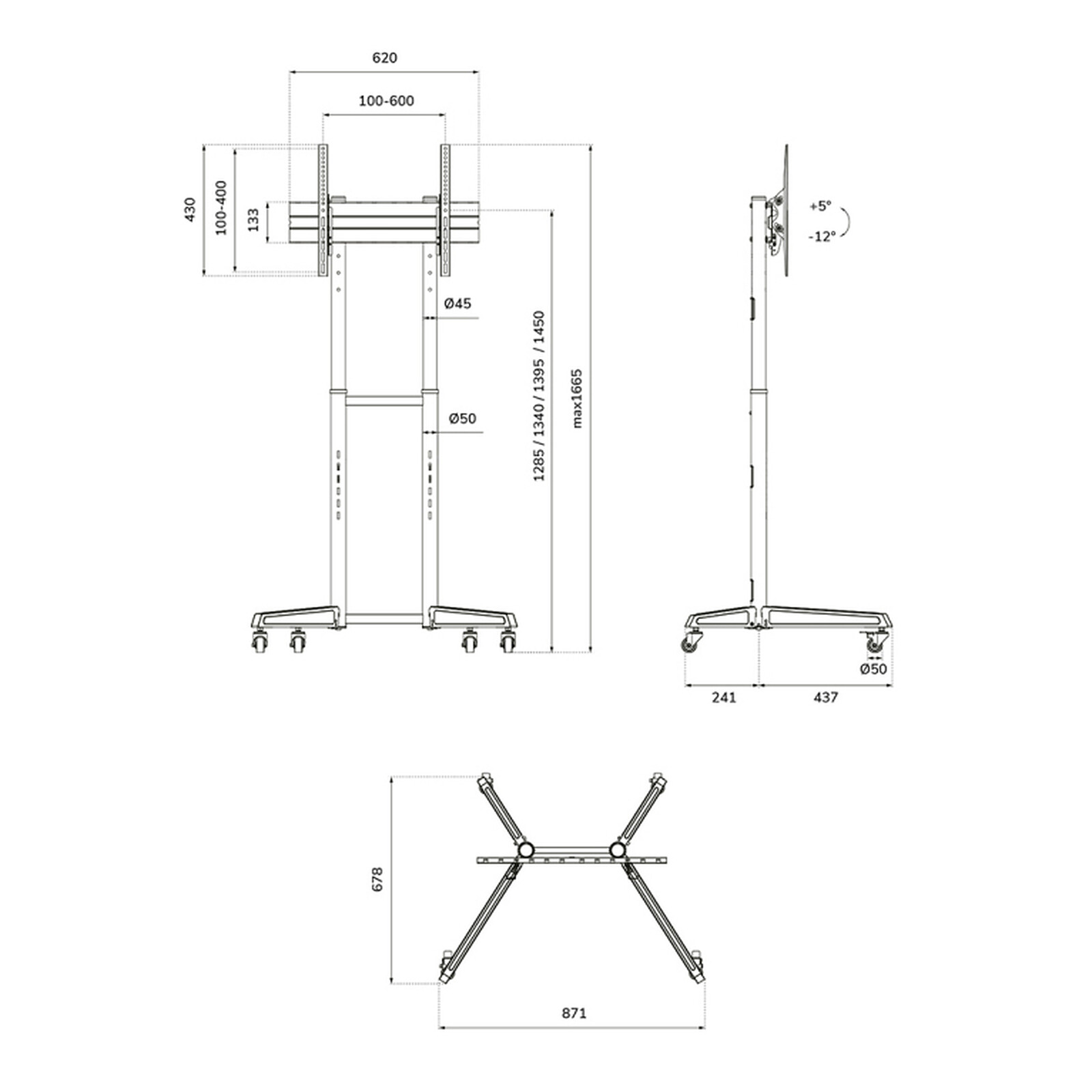 Mueble soporte móvil para fijación de pantalla de 37 a 70"