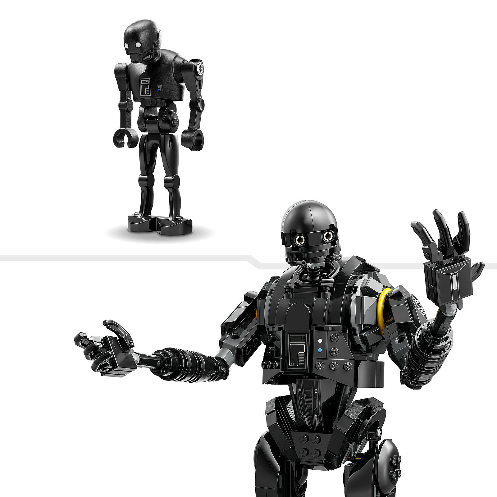 - Juguete de construcción personalizable para fans de la saga – Esta maqueta articulada permite colocar la cabeza y los brazos de K-2SO para que adopte diferentes posturas; la minifigura del droïde LEGO se coloca en el expositor