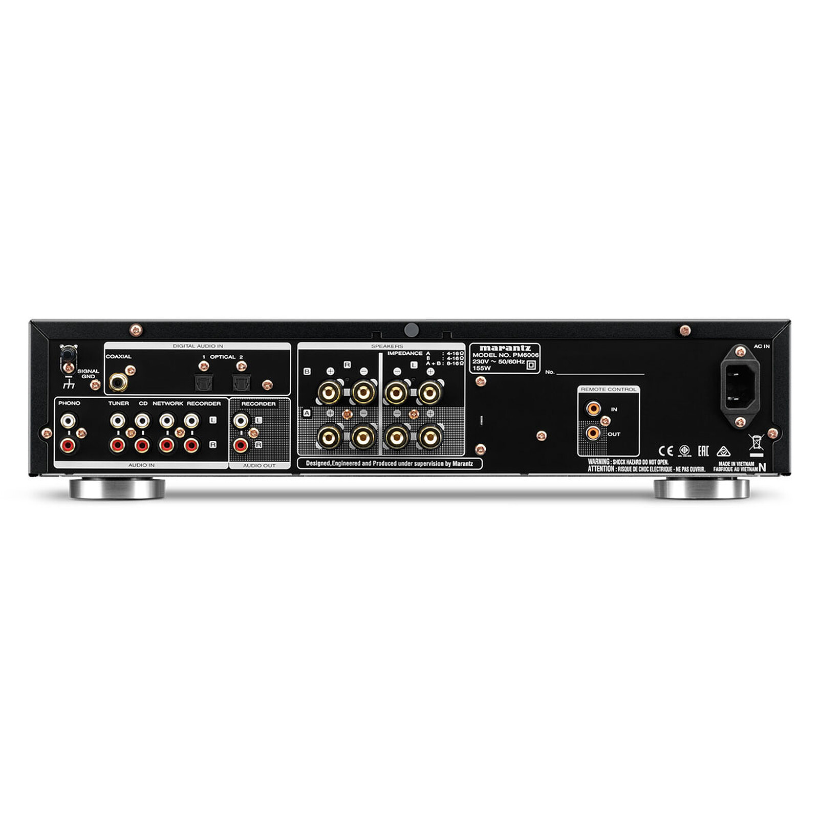 Digne successeur du PM6005, l'amplificateur PM6006 signé Marantz marche dans les pas de son aîné en conservant ses excellents gènes, sans oublier d'intégrer de nouveaux composants pour gagner encore en performances ! Ce dernier conserve donc les sections de préamplification et d’amplification de puissance équipées de composants discrets exclusifs, tandis que tous les circuits intégrés sur le chemin des signaux ont été retirés. Au rayon des nouveautés, le PM6006 offre une meilleure gestion des pics de courant au niveau de l'amplificateur, permet d'affiner le son de manière plus détaillée et même de le connecter à une large gamme de sources numériques. Dès lors, utilisez son convertisseur numérique/analogique CS4398 haut niveau 24 bits/192 kHz pour reproduire les plus fins détails et l'ambiance sonore enregistrée sur les nouveaux supports audio HI-RES.