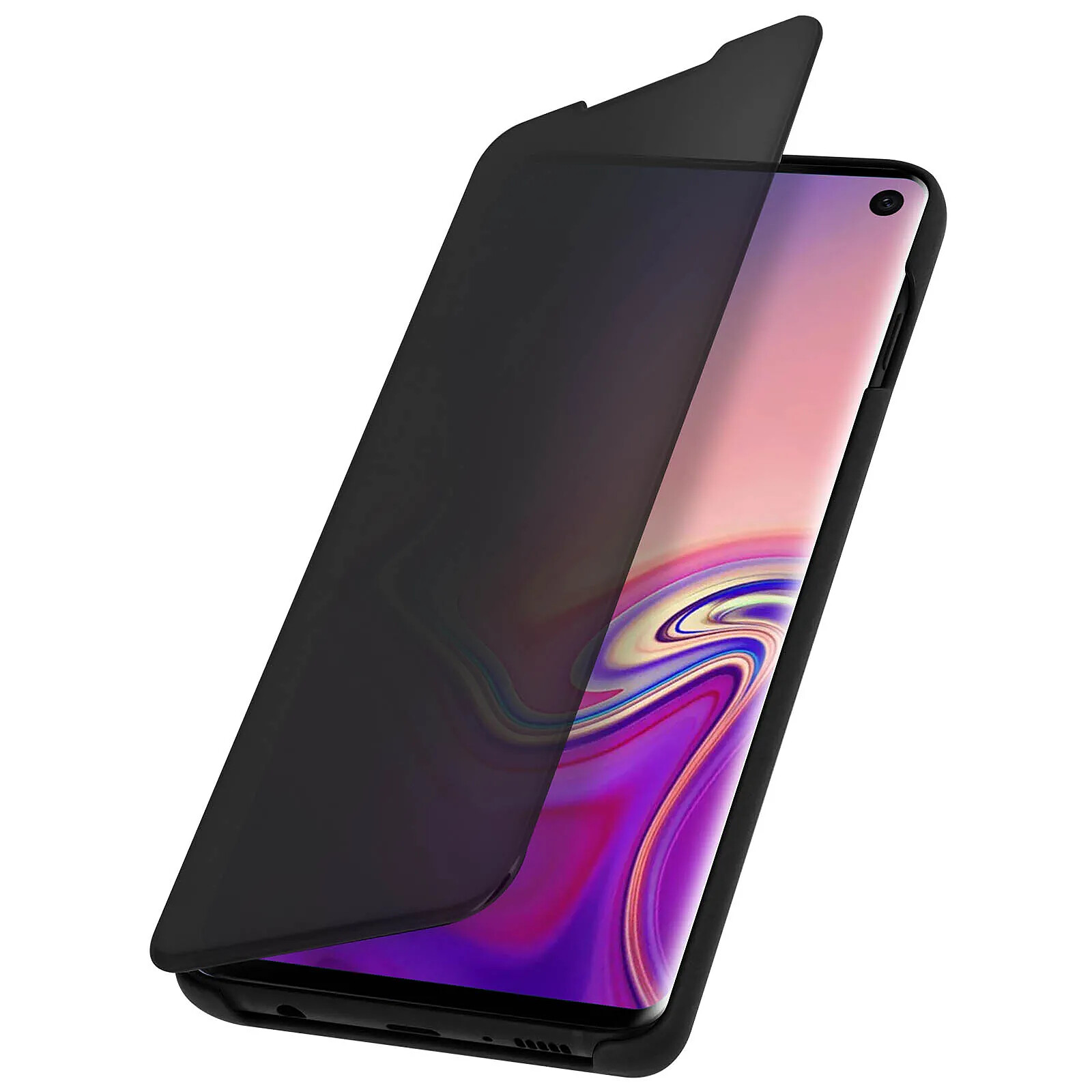 Etui folio Noir design effet miroir Samsung Galaxy S10