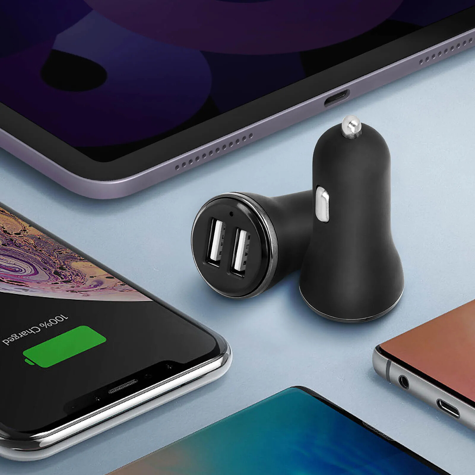 Un chargeur allume cigare de 2.4A avec deux ports USB qui permet de charger simultanément deux appareils. Un ampérage élevé pour une recharge rapide de vos smartphones et/ou tablettes lors de vos déplacements en voiture.