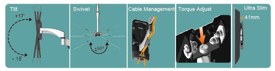 Moniteur PC ou téléviseur, ce support INOVU AE244A vous permettra de fixer au mur des écrans plats slim de 26" à 65" et pesant jusqu'à 25 kg. Son bras amovible offre une grande flexibilité d'utilisation et permet un déplacement panoramique de l'écran.