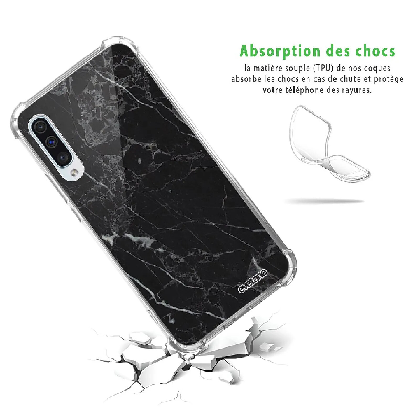 Evetane Coque Samsung Galaxy A50 anti-choc souple angles renforcés transparente Motif Marbre noir |