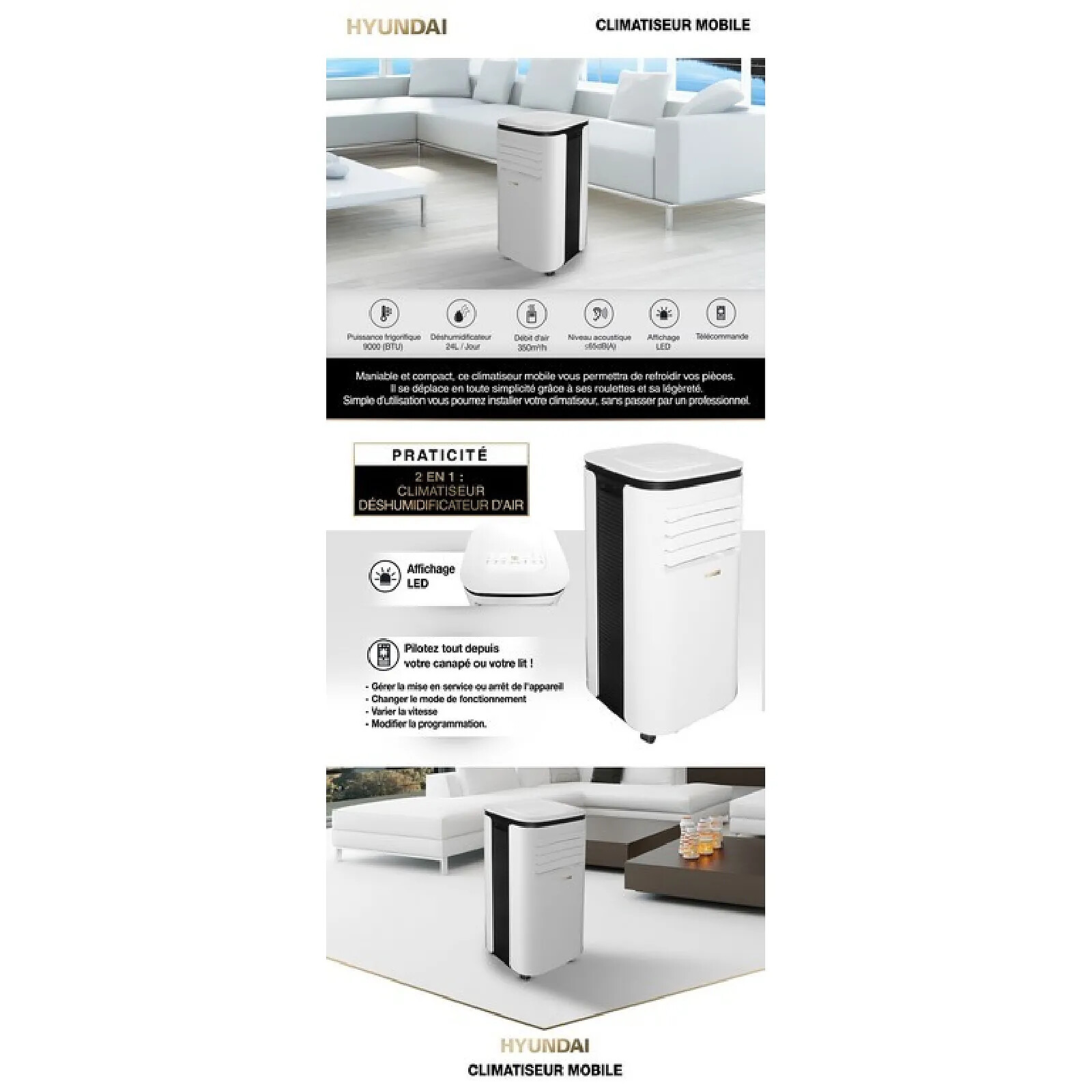 Certainement la meilleure climatisation mobile que j'ai eue depuis 20 ans. 2600w pour 10m2 dans une chambre, il est vrai qu'elle n'est pas en surcapacité car elle pourrait refroidir une pièce de 15m2. 26 degrés tenus au maximum comme préconisé par l'Ademe. Toutefois, elle est un peu bruyante la nuit, il existe un mode nuit qui diminue significativement le bruit en augmentant la consigne de 2 degrés, mais avec des bouchons d'oreilles, tout s'arrange. Vers 4h du matin je l'a coupais. Le vidage du réservoir d'eau n'est pas astreignant du fait du bac de réception chauffant. La sortie de l'air chaud s'effectue avec un tuyau de 1m5, avec un kit pour fenêtres coulissantes bien pensé. Il faudra tout de même utiliser du ruban adhésif pour maintenir le tout en de cas de grand vent, le volet étant lui légèrement monté pour passer ce flux. Bref, comme climatisation de dépannage, elle m'aura bien rendue des services en cet été 2024, qui n'est pas le plus chaud. A recommander donc pour les logements aux façades classées. Transporteur DPD irréprochable.