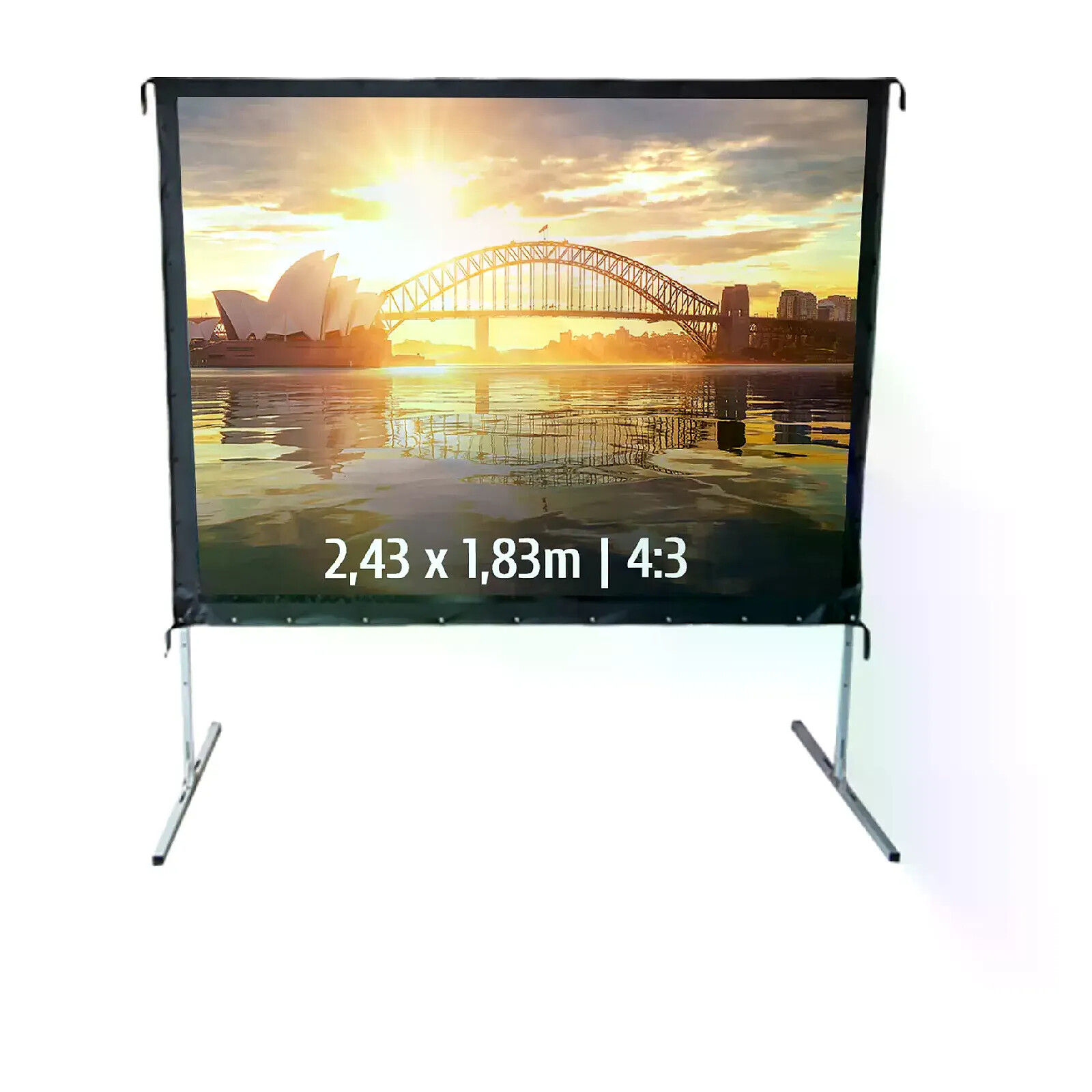 Emportez la magie du grand écran partout avec notre Écran de Projection Valise. Conçu pour la mobilité et la facilité d'utilisation, cet écran combine commodité et haute qualité visuelle dans un format compact et élégant. Idéal pour les présentations professionnelles, les soirées cinéma en plein air ou les événements itinérants, il se déploie rapidement et offre une expérience de visionnage supérieure où que vous soyez. Léger, robuste et facile à transporter, notre Écran de Projection Valise est votre compagnon de choix pour une projection parfaite en tout lieu, à tout moment. Entrez dans un monde où la performance rencontre la portabilité.L'écran de projection valise KIMEX 046-3005K est une solution portative composée de deux toiles de projection, une structure pliable et un flight case de transport, idéal pour vous accompagner lors de vos prestations audiovisuelles. Cet écran vous propose deux toiles de projection (243 x 183 cm, format 4/3), l'une pour projection Avant (PVC blanc mât, gain 1,05), l'autre pour des projections Arrière (PVC translucide, gain 1,5) que vous pourrez choisir d'installer selon votre besoin sur son cadre, grâce à ses boutons pression qui leur assureront une parfaite planéité et le meilleur rendu visuel. Avec son cadre léger et ses deux pieds réglables, l'écran 046-3005K se monte en seulement quelques instants grâce à son système à charnières clipsables et vous permettra d'ajuster le niveau de votre image (19-79 cm, bas de toile) pour s'adapter parfaitement à toutes vos configurations. Après utilisation, vous pourrez ranger votre écran dans son solide flight case qui dispose des fermetures, poignées et roulettes pour vous garantir protection et maniabilité. L'écran de projection valise KIMEX 046-3005K s'adresse donc aux professionnels qui recherchent un écran robuste et mobile offrant une grande qualité de projection. Recommandé pour les vidéoprojecteurs à focale courte et très courte.