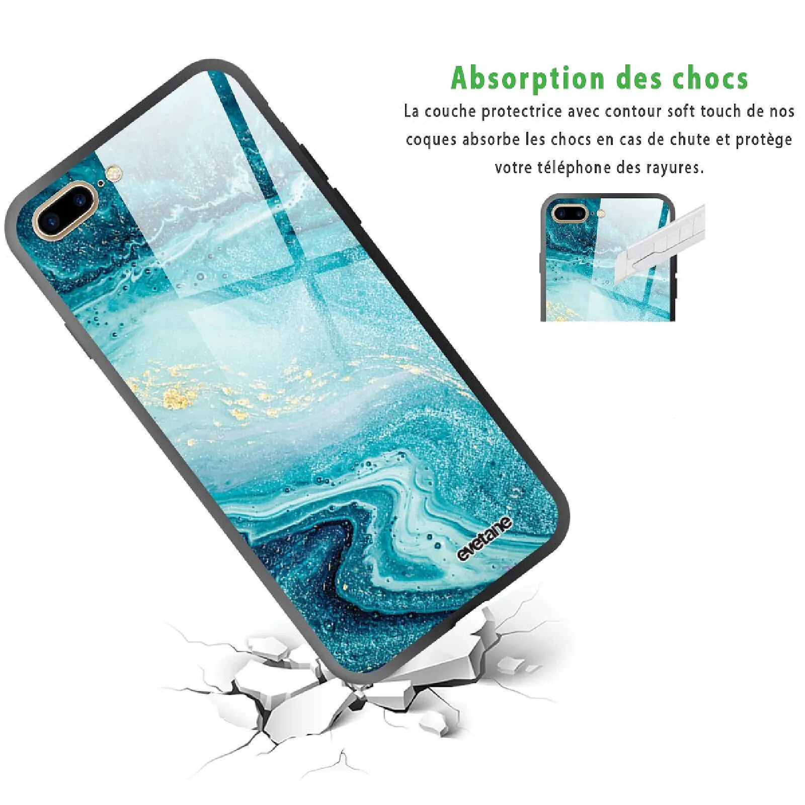 Evetane Coque iPhone 7 Plus/ 8 Plus Coque Soft Touch Glossy Bleu Nacré Marbre Design |