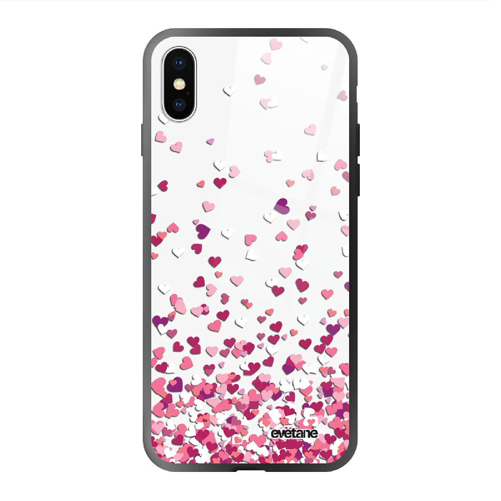 Coque en verre trempé iPhone Xs Max Confettis De Coeur Ecriture Tendance et Design Evetane.