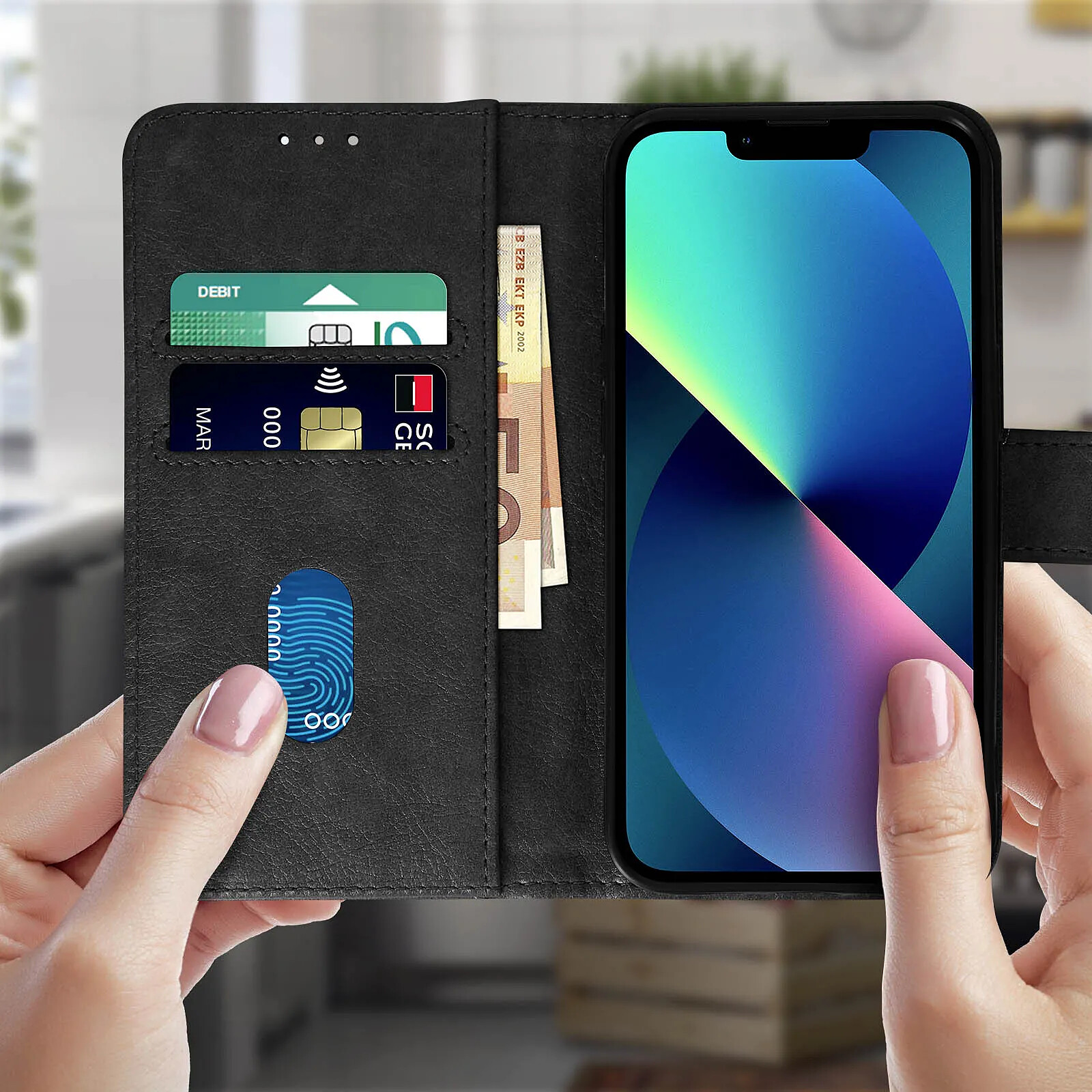Étui noir avec un porte-cartes spécialement conçu pour Apple iPhone 13 Mini