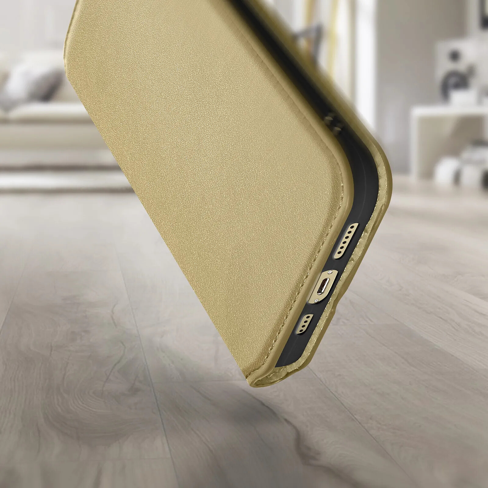 Avizar Étui iPhone 13 Pro Clapet Portefeuille Fonction Support Vidéo Dorée |