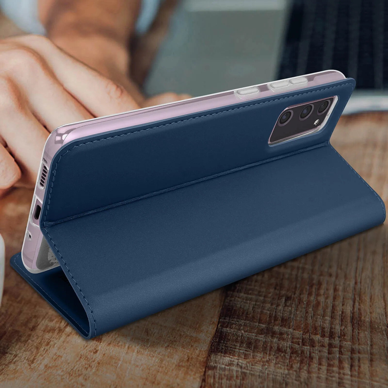 Dux Ducis Étui Samsung S20 FE Support + Porte-carte Effet Satiné Dux Ducis Bleu Nuit