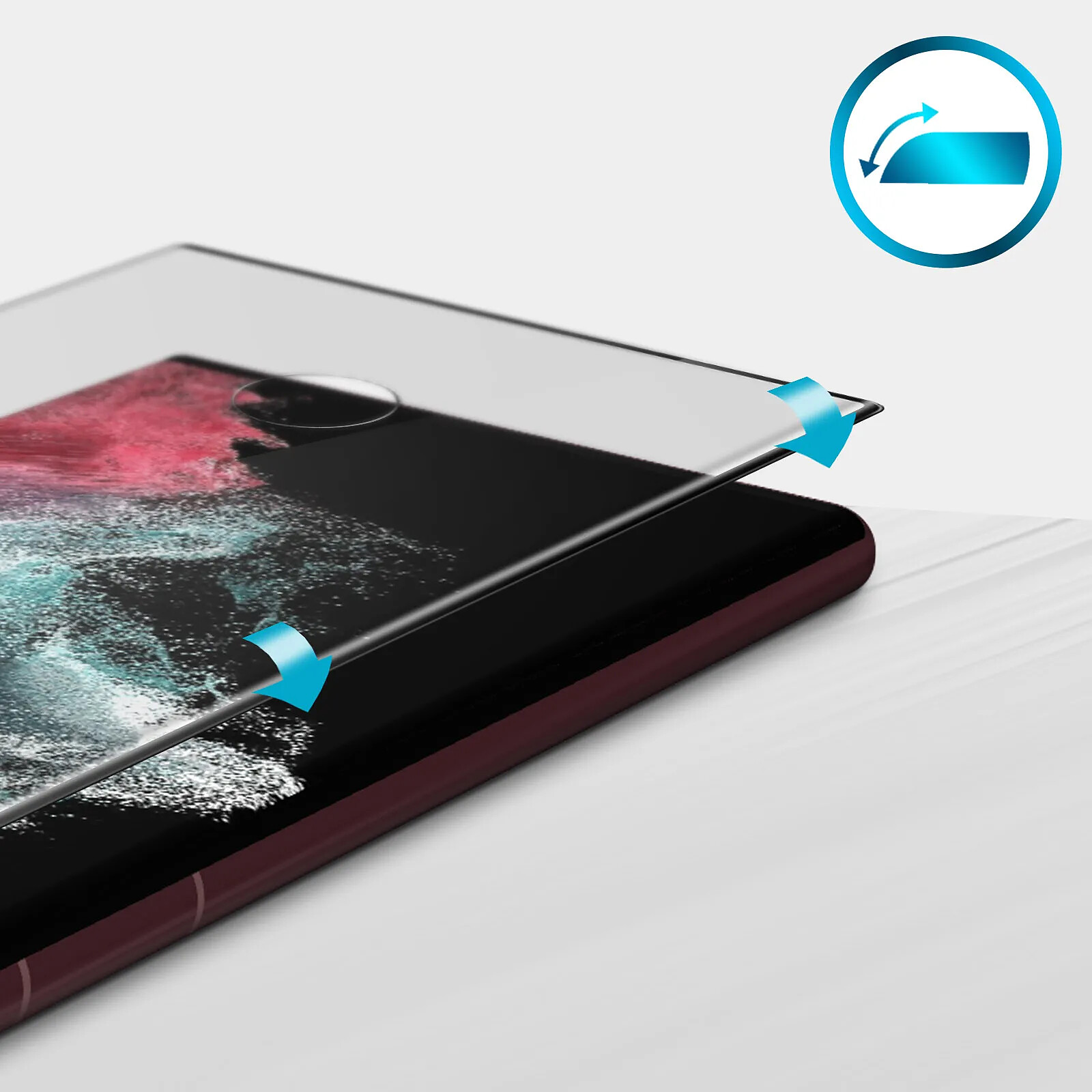 Bords incurvés, le verre épouse parfaitement l'écran jusqu'aux bords ronds
