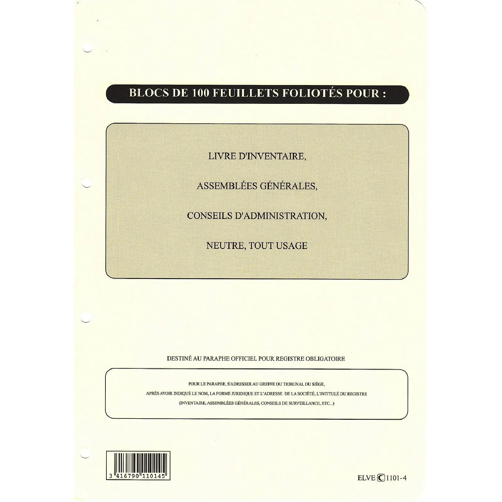 ELVE Recharge Classeur (Assemblée, Délibération Etc..) 297 x 210 Folioté 4 trous 100P