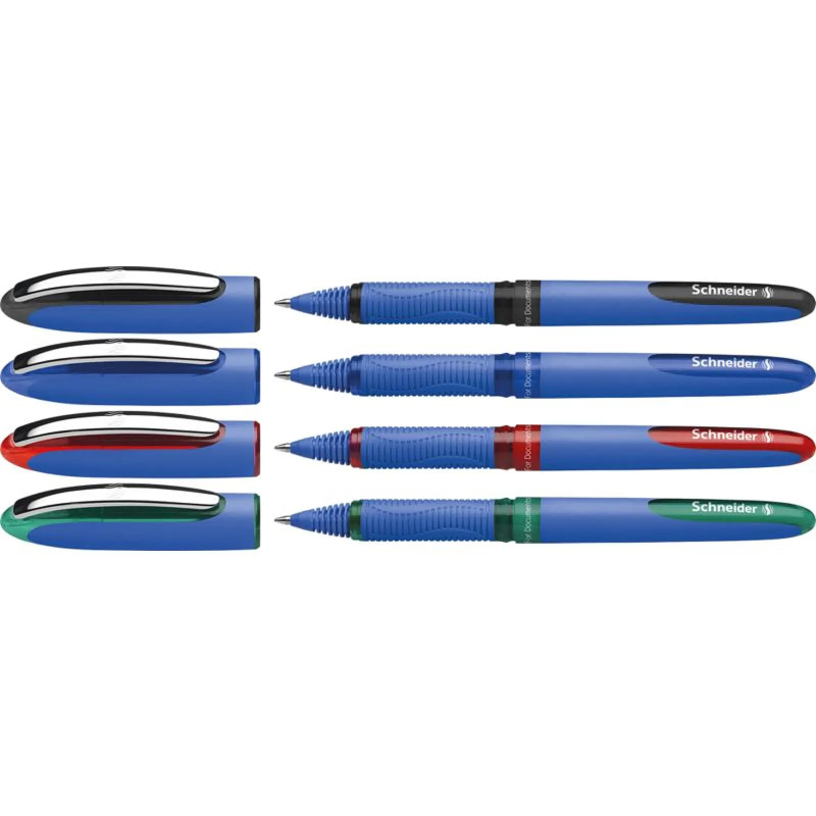 Schneider Roller à encre avec pointe conique hybride pour la sensation d'une écriture agréable et glissante. Épaisseur de trait environ 0.3 mm. Pochette pratique avec 4 pièces: noire, rouge, bleue, verte. Indélébile selon la norme ISO 14145-2. L'innovant Système Super Flow garantit un débit d'encre du début jusqu'à la fin. Le grand volume d'encre peut être contrôlé par une fenêtre et ainsi utilisé complètement. Le modèle cap-off peut rester ouvert pendant 2-3 jours sans sécher. Le One Business a un clip en métal de haute qualité et un grip ergonomique caoutchouté pour une prise en main sûre et décontractée.