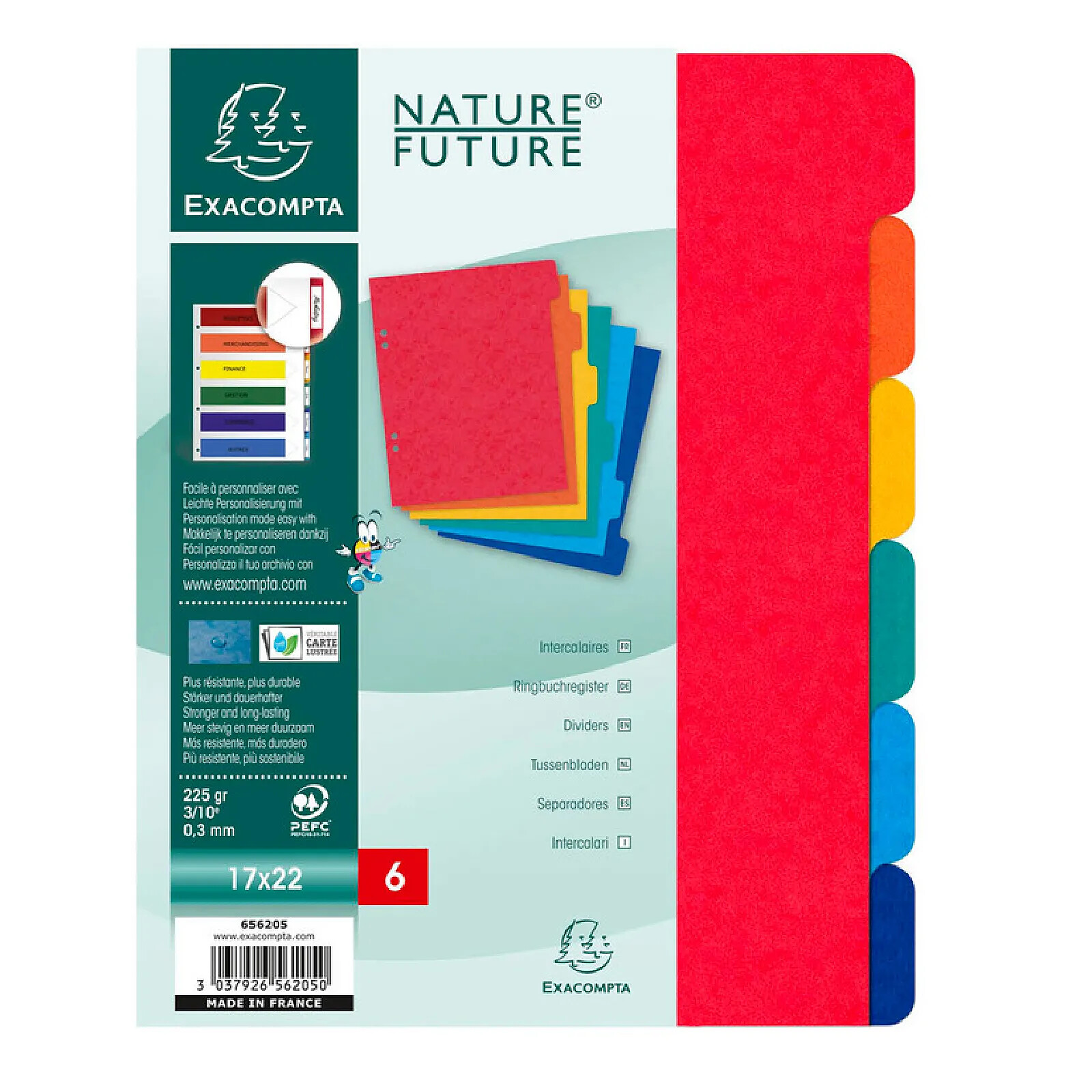 20 x Exacompta Intercalaires Nature Future carte lustrée 225g