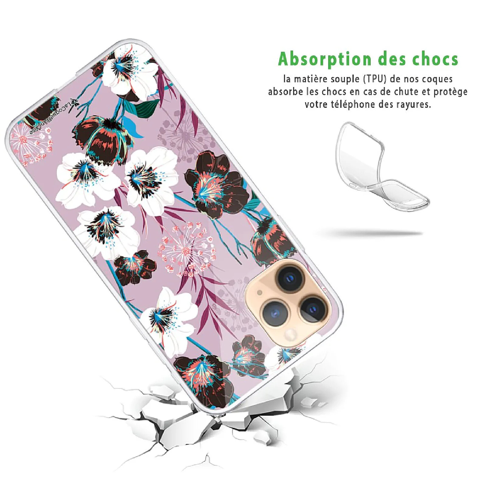 LaCoqueFrançaise Coque iPhone 11 Pro 360 intégrale transparente Motif Fleurs parme Tendance .