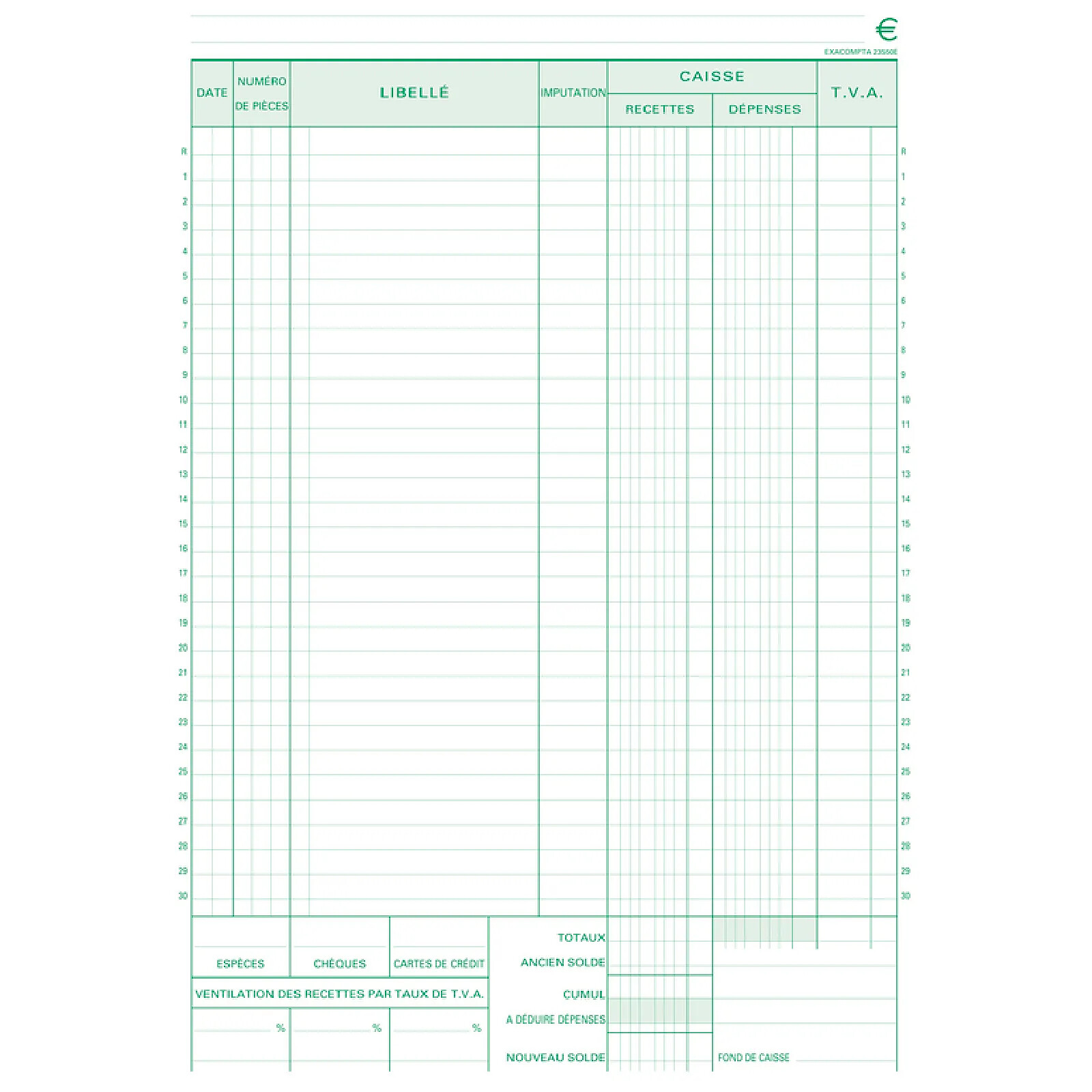 Exacompta Le carnet de caisse permet d'enregistrer chronologiquement les mouvements de la caisse (recettes, dépenses) et de les transmettre à un tiers (comptable, expert comptable) tout en conservant une copie.