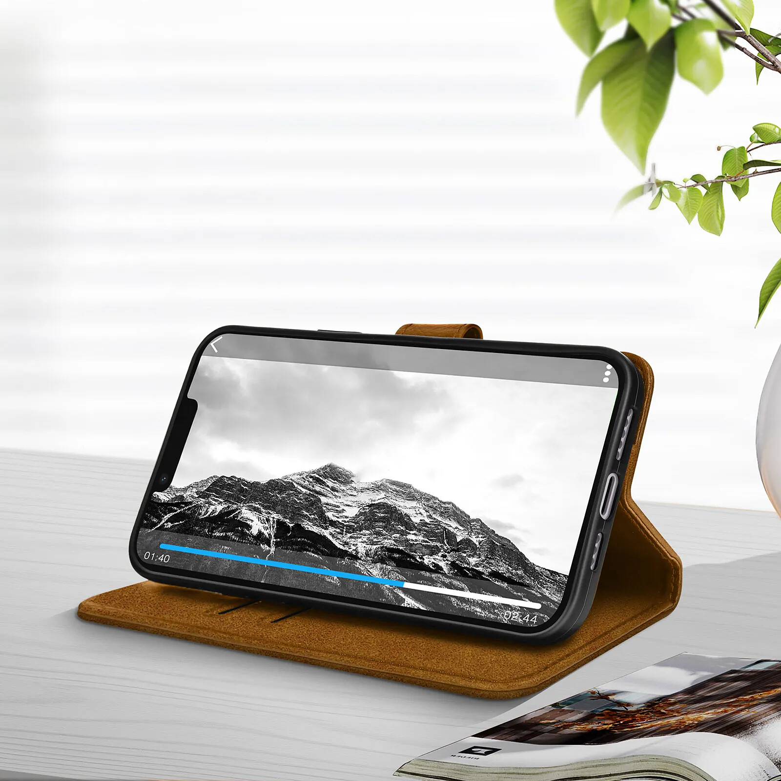 Avizar Housse iPhone 14 Plus Clapet Portefeuille Fonction Support Vidéo Marron