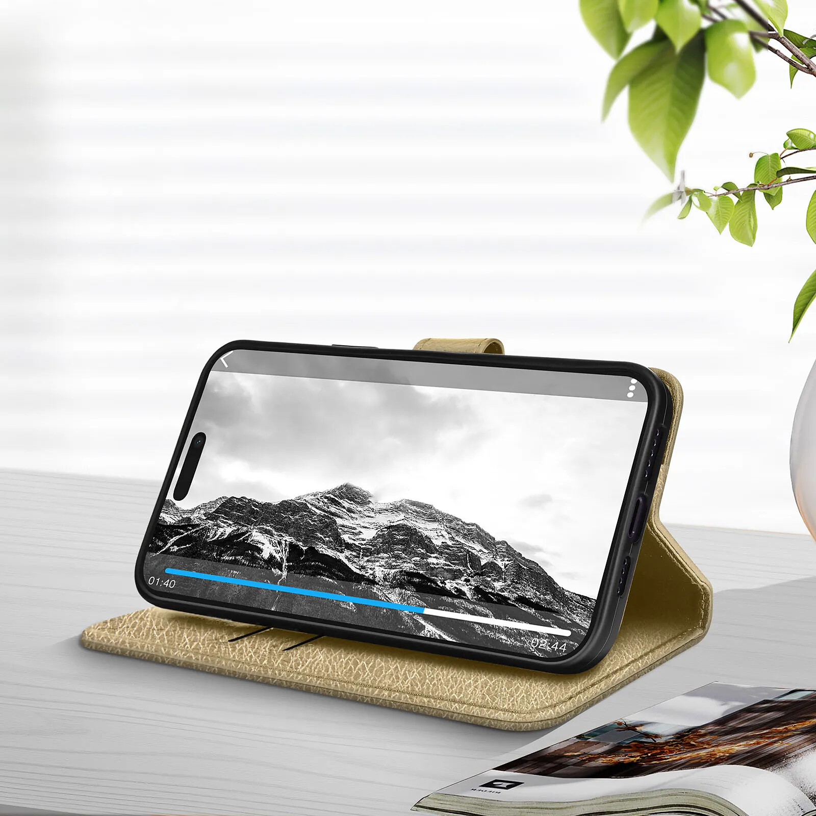 Avizar Housse iPhone 14 Pro Max Clapet Portefeuille Fonction Support Vidéo Doré Chesterfield