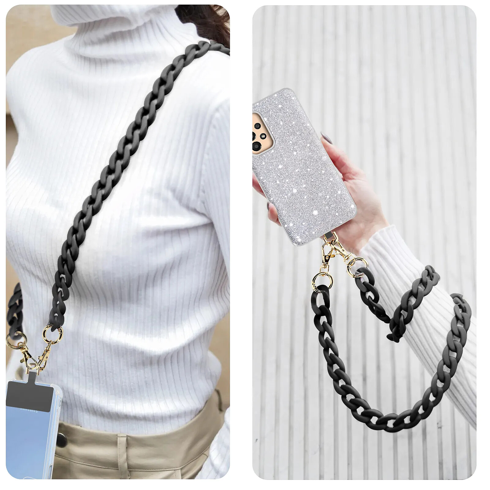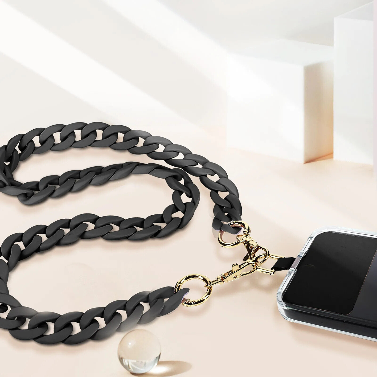 moxie Bijou de Téléphone Chaîne Grosse Maille 120cm Moxie Série Ibiza Noir