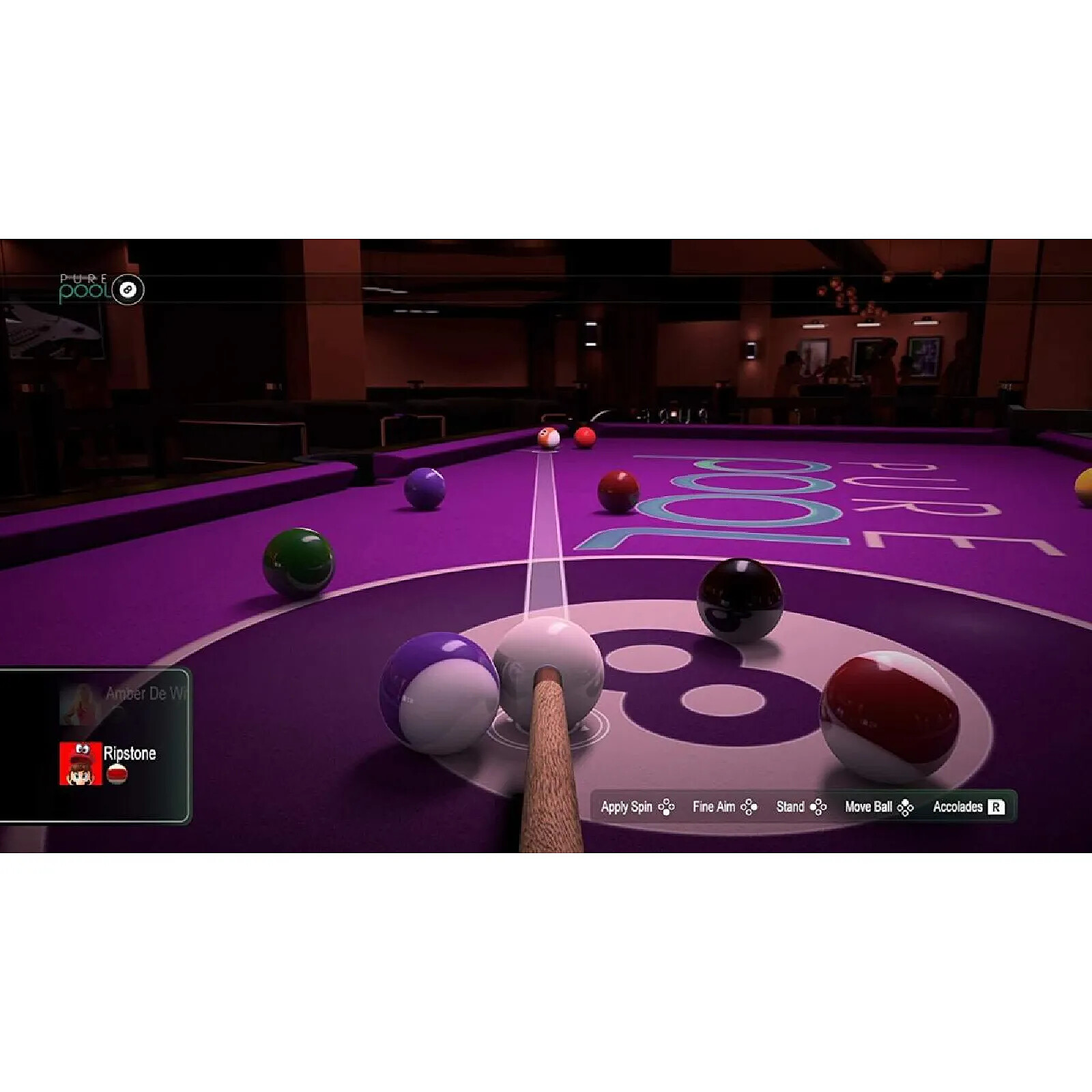 Découvrez Pure Pool NINTENDO SWITCH ! Pure Pool établit un profil ADN au fur et à mesure que vous jouez, créant ainsi une interprétation IA de vous-même, de vos amis et de vos adversaires - contre lesquels vous pouvez jouer, même s'ils ne sont pas en ligne. Que vous préfériez passer votre temps à jouer en solo ou à vous mesurer à la concurrence, connectez-vous et préparez-vous à être époustouflé par ce qui se rapproche le plus du billard réel ! Avec 4 modes de jeu, du billard américain classique à 8 boules au Killer, 4 défis, de Perfect Potter à Royal Rumble, et un mode multijoueur en ligne en temps réel, vous pouvez faire des courses, affiner vos compétences et vous mesurer aux meilleurs dans des tournois et des matchs en ligne pour obtenir une place dans les classements mondiaux. - Graphismes photoréalistes et visuels détaillés - Multijoueur en ligne en direct - Le profilage ADN permet aux joueurs de se mesurer au style de jeu de leurs amis ou de leurs adversaires à tout moment. - Un moteur physique affiné pour une jouabilité très fluide. - Une salle de billard animée pour une expérience de billard immersive.