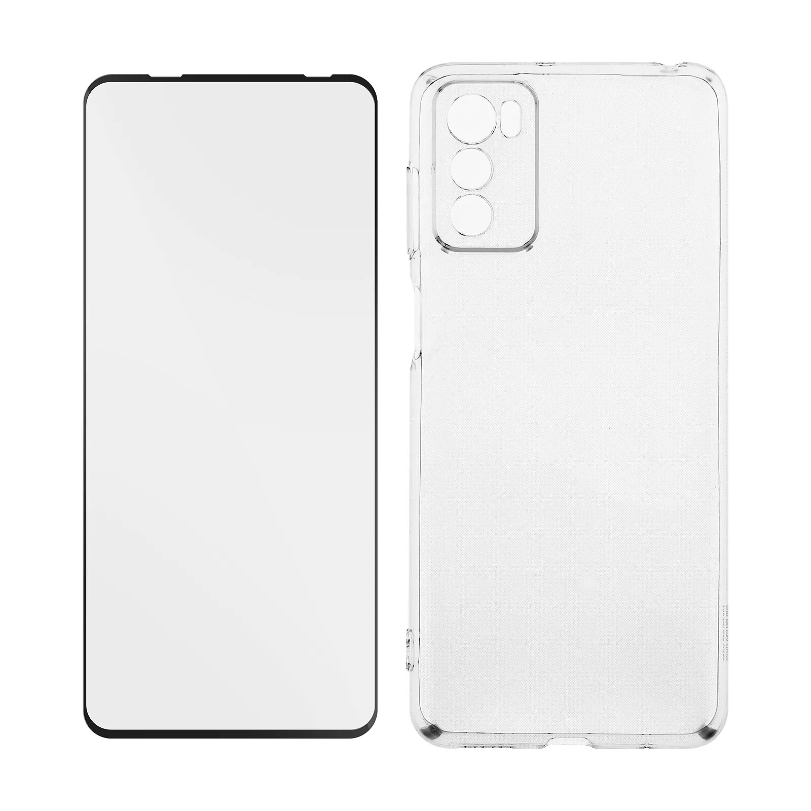 Pack protection Motorola Moto G42. Coque transparente en silicone souple qui protège des chocs et rayures, tout en laissant le design du mobile visible. Film écran en verre trempé 9H ultra-résistant contour noir. Fonctionnalités accessibles.